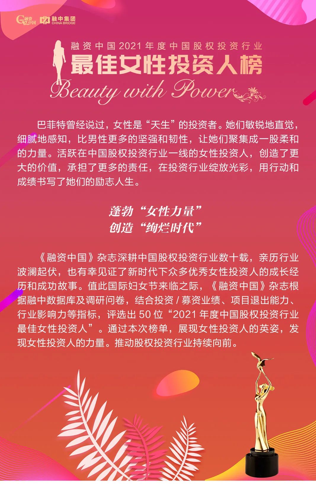 華麗揭曉|融資中國2021年度最佳女性投資人榜單重磅發布