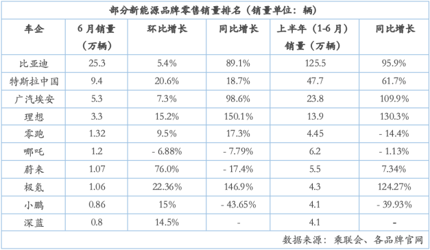 6月,新能源汽車產(chǎn)銷分別完成78.4萬輛和80.6萬輛,同比分別增長32.8%和35.2%,市場占有率達到30.7%。