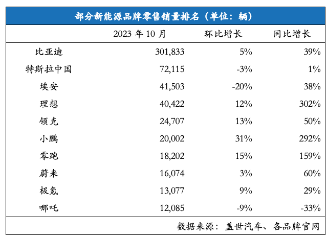 部分新能源品牌具體零售銷(xiāo)量如下: